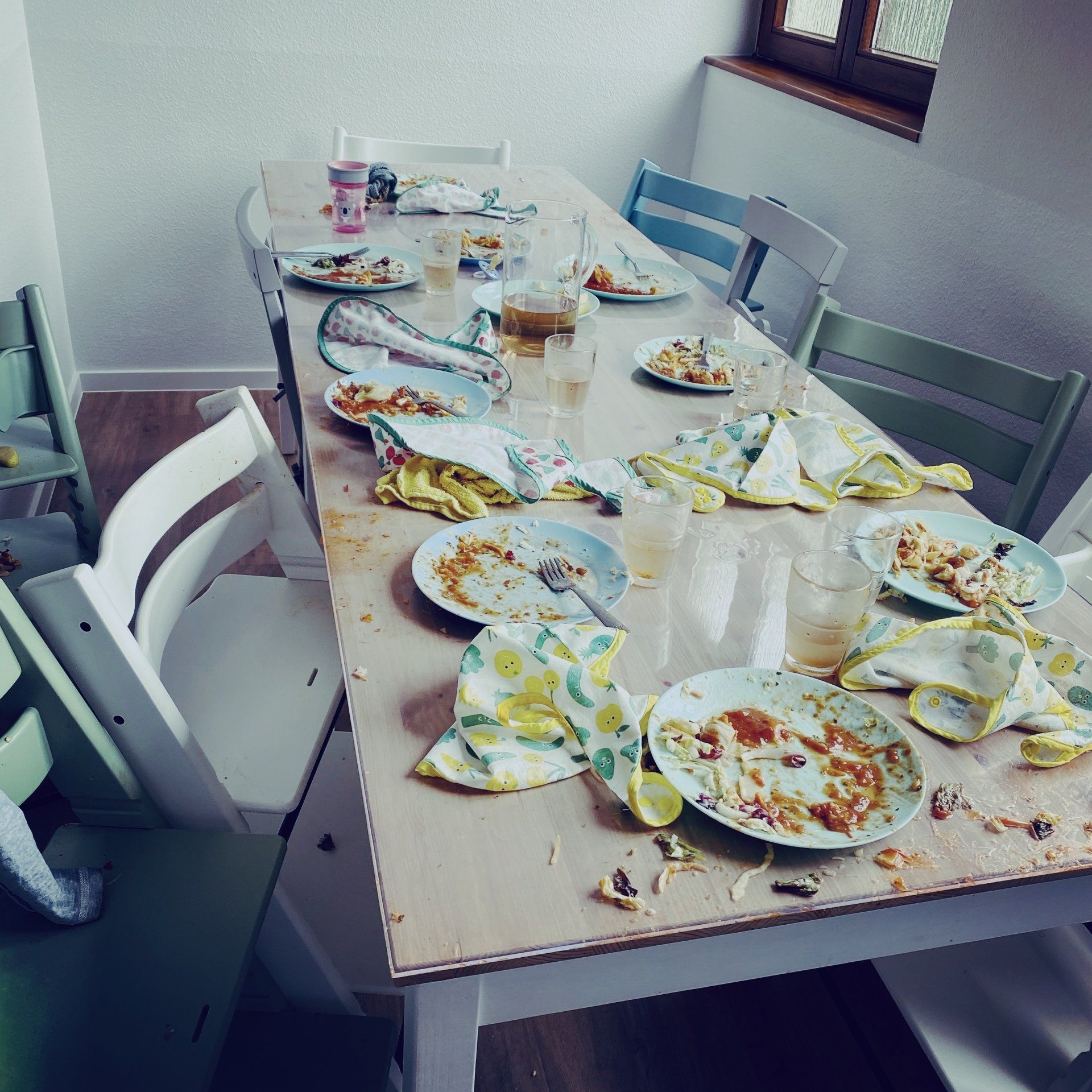 Bei uns dürfen die Kinder selbst essen, auch wenn's dann mal etwas wilder aussieht. Uns ist es sehr wichtig, dass die Kinder ein gutes Verhältnis zu Essen kennenlernen und dabei keinen Zwang erfahren, sowie mit vielen Sinnen das Essen erproben können.